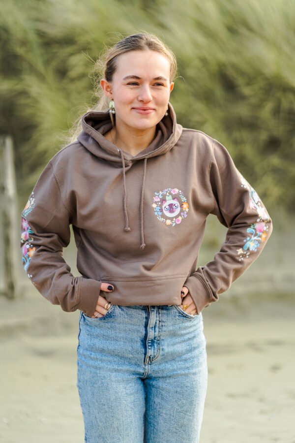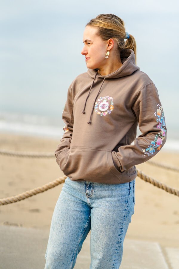 Say hello to comfort and style with our charming brown sweater! Featuring a whimsical hand-drawn cat illustration complemented by lovely botanical elements, this piece is a delightful addition to your wardrobe. Whether you’re lounging at home or stepping out, this sweater embraces both warmth and creativity.