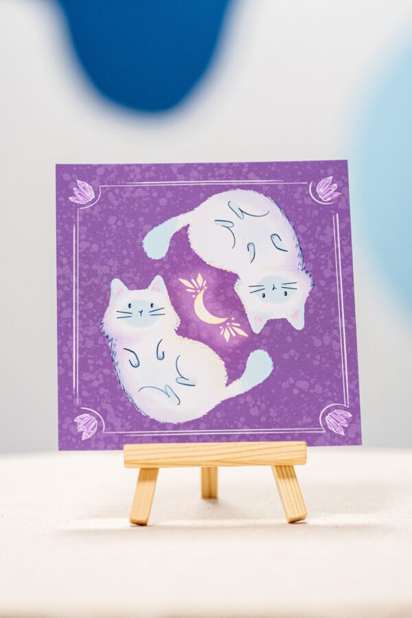 Breng een vleugje magie in je correspondentie met onze unieke vierkante postcard. Versierd met betoverende katten, is dit ontwerp perfect voor iedereen die houdt van bijzondere en creatieve kaarten.